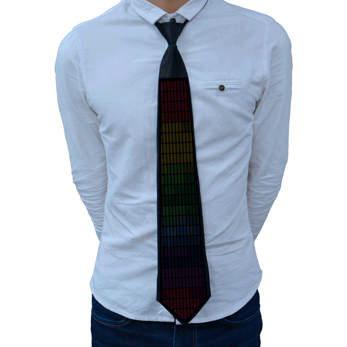 The new sound control light-emitting tie uses a 3V wireless driver and requires a 2AA battery that flickers according to changes in sound or music rhythm to support customized patterns.