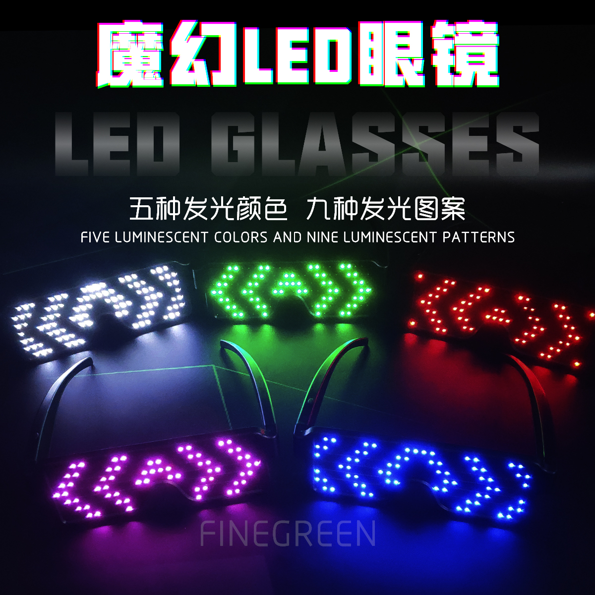 LED glasses consisting of 164 LED beads have five light-emitting colors and nine dynamic light-emitting patterns.